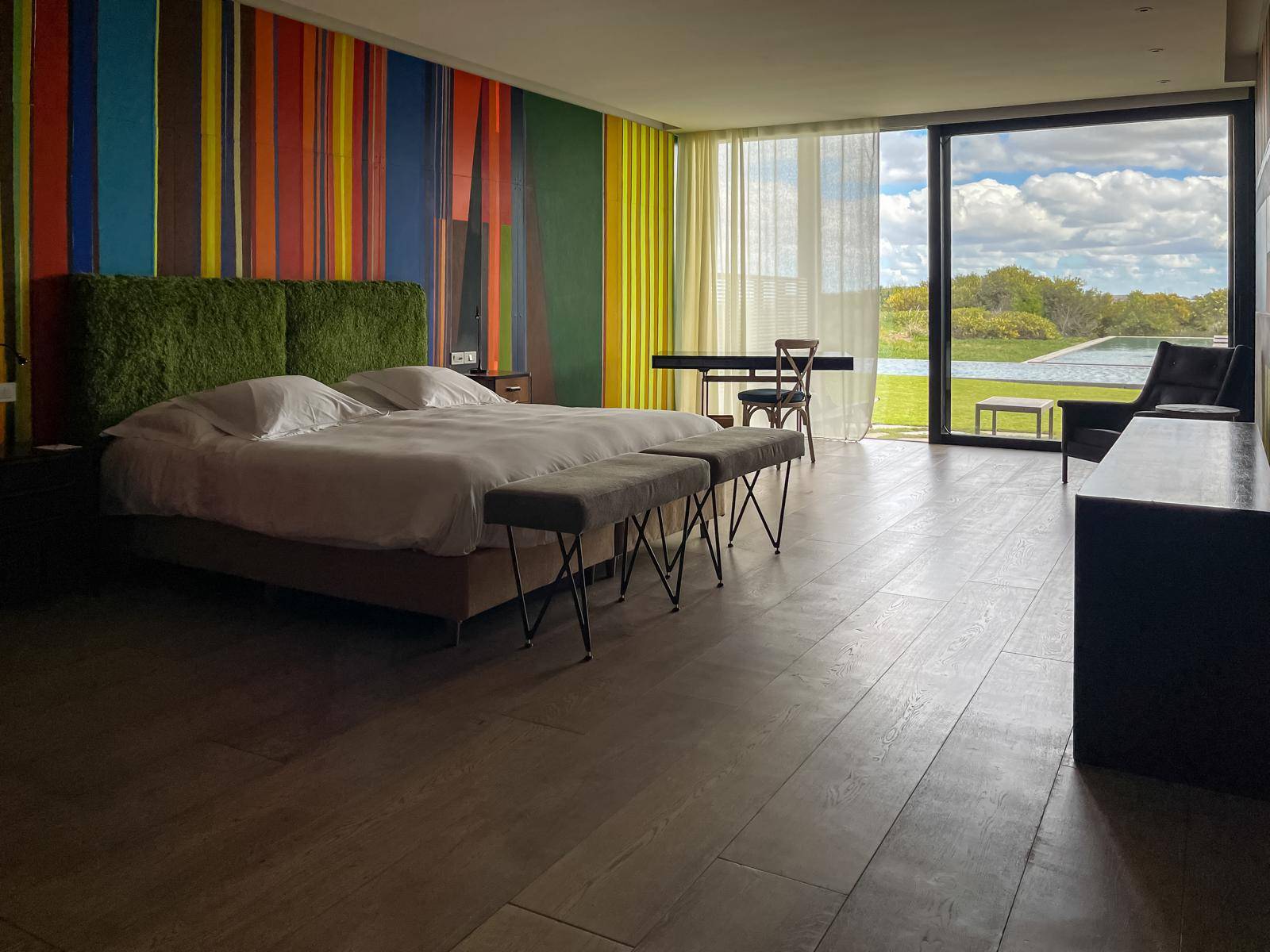 Das Bahia Vik José Ignacio liegt an der ruhigen Playa Mansa in José Ignacio, direkt zwischen Dünen und Atlantik. Das Anwesen umfasst fünfzehn individuell gestaltete Bungalows sowie ein zentrales Gebäude aus grauem uruguayischem Schiefer. Klare Architektur, offene Grundrisse und große Glasflächen prägen das Erscheinungsbild und schaffen fließende Übergänge zwischen Innen- und Außenbereichen. Jeder Bungalow folgt einem eigenen gestalterischen Konzept und ist mit ausgewählten Kunstwerken ausgestattet, die Farben und Formen der Küstenlandschaft aufgreifen. Einige Unterkünfte befinden sich unmittelbar am Strand und bieten freien Blick auf das Meer. Großzügige Terrassen, vier dunkle Steinpools und weitläufige Außenflächen eröffnen unterschiedliche Perspektiven auf Wasser und Horizont. Auch im Haupthaus befinden sich mehrere individuelle Suiten, die jeweils einem eigenen Stilkonzept folgen. Jede Suite unterscheidet sich in Gestaltung, Farbwelt und künstlerischer Ausrichtung und setzt – ebenso wie die Bungalows – auf die Verbindung von zeitgenössischem Design, Kunst und Natur. Das Restaurant „Zodíaco“ ergänzt das Haus mit einer Küche, die regionale Produkte in den Mittelpunkt stellt. Insgesamt verbindet das Hotel zeitgenössisches Design mit der klaren Atmosphäre der Küste und schafft einen Ort, der Kunst, Architektur und Natur auf besondere Weise zusammenführt.