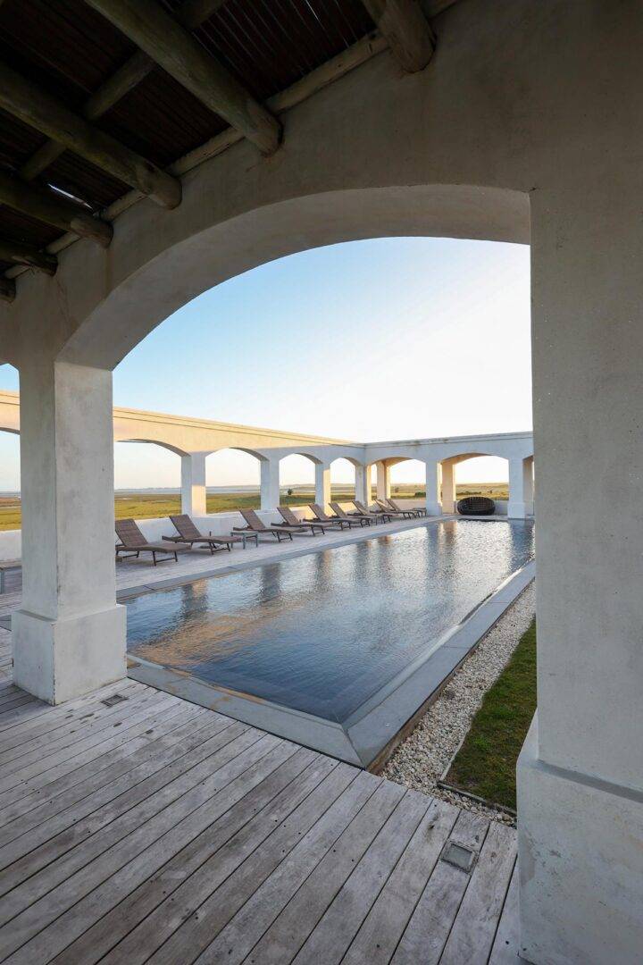 Nahe José Ignacio, inmitten weiter Landschaft, liegt die Estancia Vik – ein luxuriöses Hotel, das traditionelle Architektur auf moderne Weise interpretiert. Weiße Lehmwände, rote Ziegeldächer und großzügige Innenhöfe greifen die Bauweise klassischer Estancias auf und verbinden sie mit zeitgemäßer Gestaltung. Ein schwarzer Steinpool bildet den Mittelpunkt des Gartens. Die offene Umgebung mit Hügeln und Lagunen bietet Weite und Ruhe. Zwölf individuell gestaltete Suiten unterscheiden sich in Stil, Farbgebung und künstlerischer Ausrichtung. Jede Suite ist einzigartig, mit großzügigen Räumen und sorgfältig ausgewählten Materialien und Kunstwerken. Für Reitbegeisterte bietet die Estancia Vik ideale Bedingungen: ausgedehnte Reitwege durch die umliegende Landschaft und ein vielfältiges Programm für Anfänger wie erfahrene Reiter machen den Aufenthalt besonders. Die Estancia Vik ist ein Luxushotel, das Exklusivität mit moderner Gestaltung verbindet und Ruhe, Privatsphäre sowie hochwertige Architektur in den Mittelpunkt stellt.